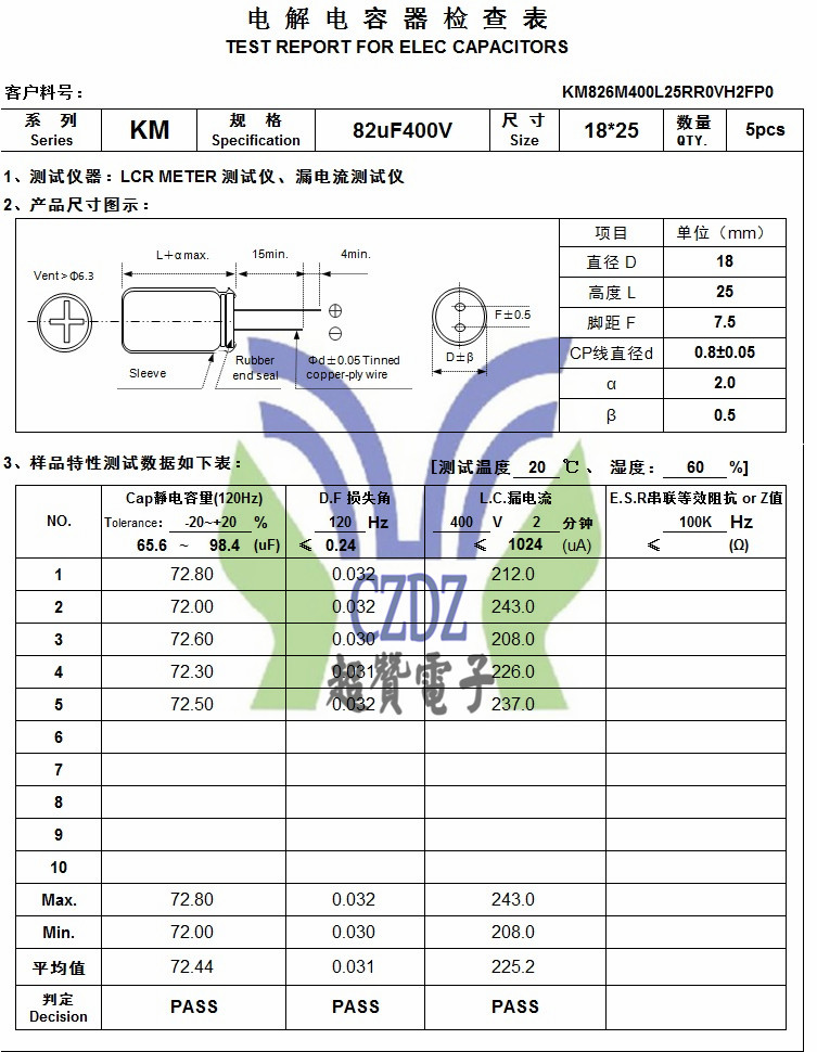 KM 82UF400V 18*25ChengX承興品牌全系列鋁電解電容