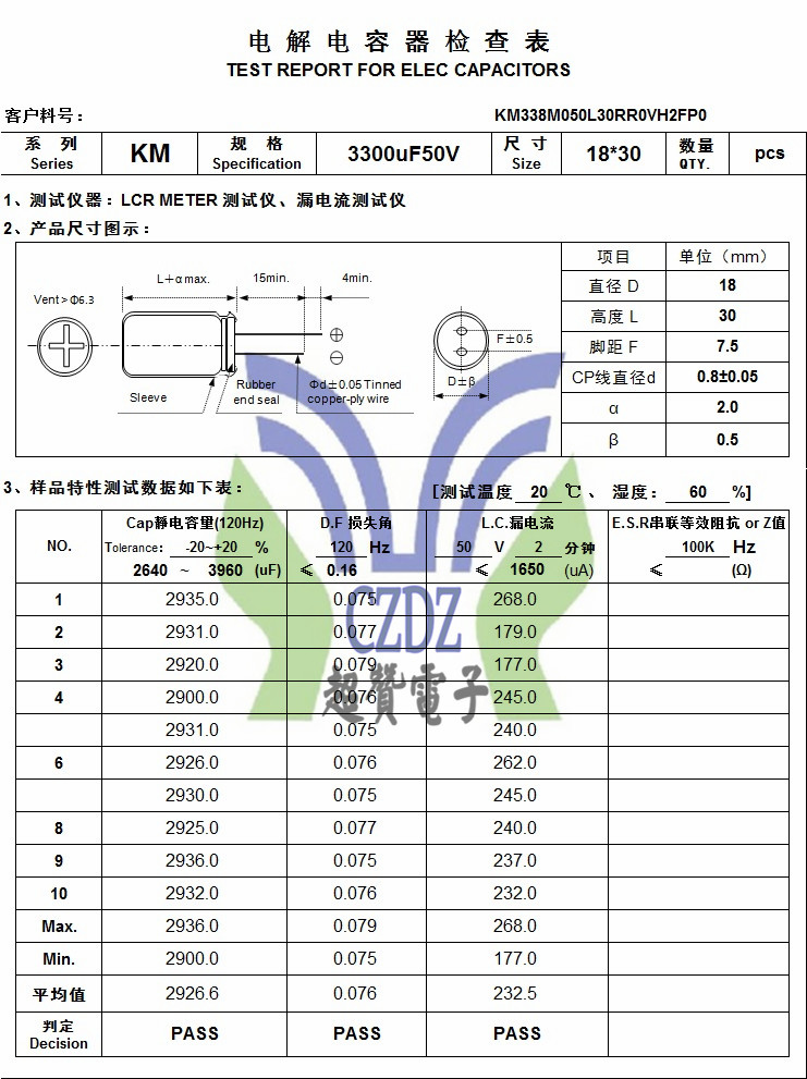 KM 3300UF50V 18*30承興Chengx全系列鋁電解電容